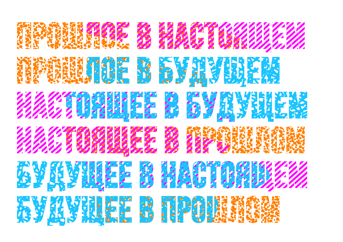 Одни проекты призывают настоящее в отрыв в высокотехнологическое будущее, а непричастные сгинут в сингулярности. Другие, отрицая этот отрыв, соревнуются в многоразличных версиях настоящего, какое из них более «настоящее» чем другое. Иные настырно убеждают в том, что как будущее, так и настоящее просто обязано быть высокодуховным, посему необходимо реабилитировать/мобилизовать/наследовать концепции и образы разнодалекого прошлого. Все в целом приводит к тому, что в одном – современном нам – времени, да и в едином пространстве сосуществуют, проявляют себя, материализуются концепции из различных времен.